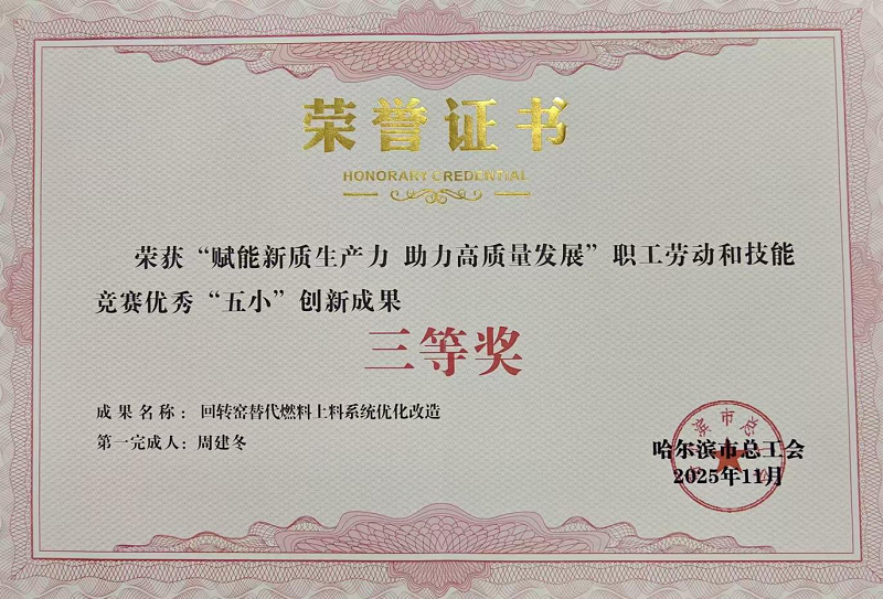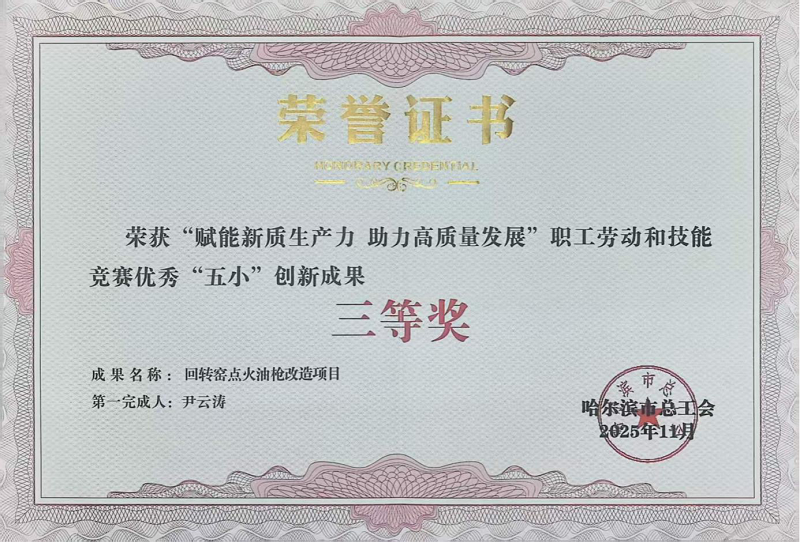 经过基层工会推荐,公司共上报6项创新成果。活动组委会于2025年12月下发了《哈尔滨市总工会关于发布2025年“赋能新质生产力助力高质量发展”职工劳动和技能竞赛优胜单位、引领性项目、工人先锋号、 优秀“五小”创新成果和“安全吹哨人”的通报》。公司共有4个项目获奖,