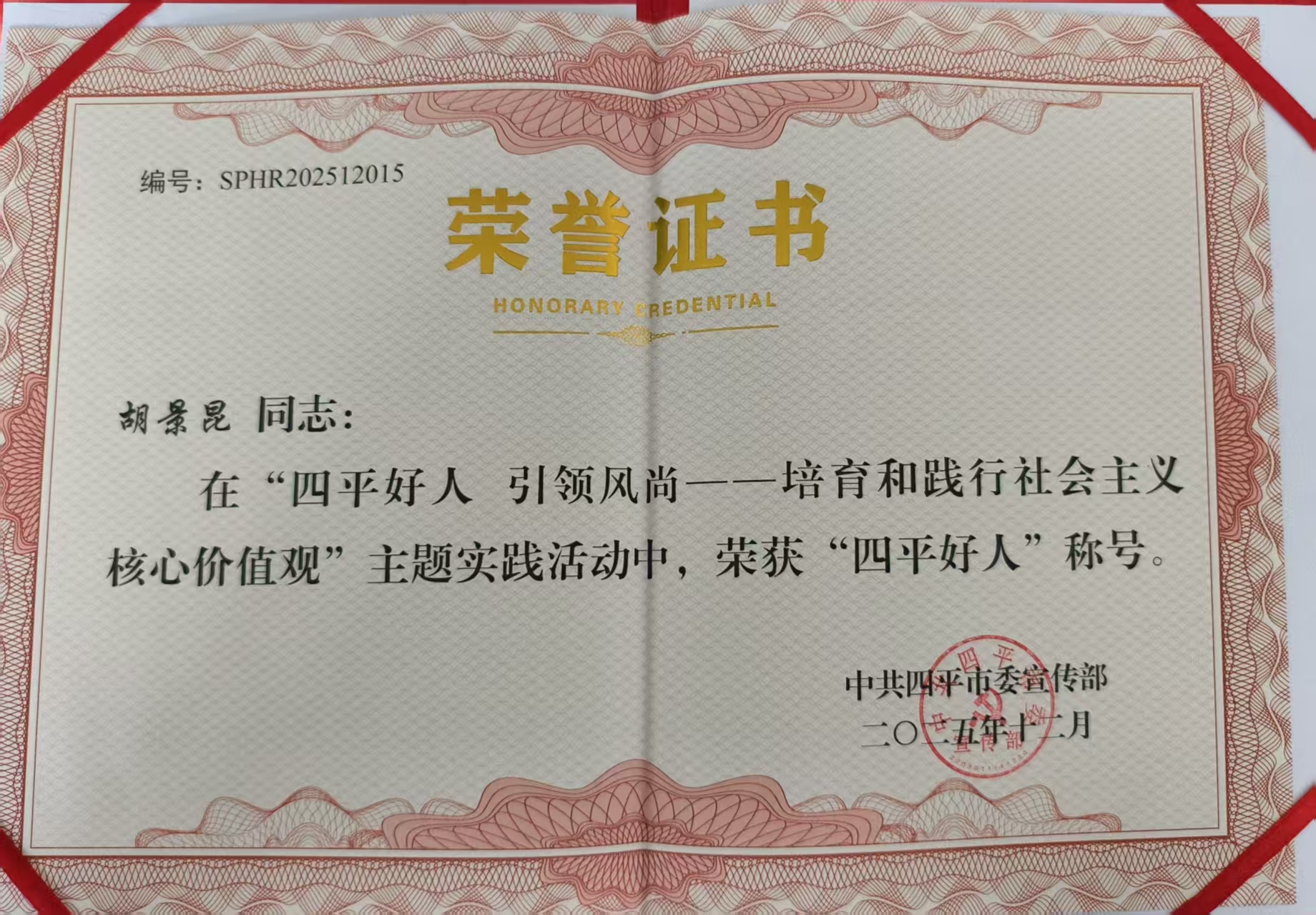 近日,四平市“四平好人”评选结果正式揭晓,亚泰建材伊通公司职工胡景昆凭借多年来恪尽职守、无私奉献的突出表现,成功获评敬业奉献类“四平好人”,这份荣誉不仅是对其个人职业素养的高度认可,更是公司精神文明建设成果的生动体现。